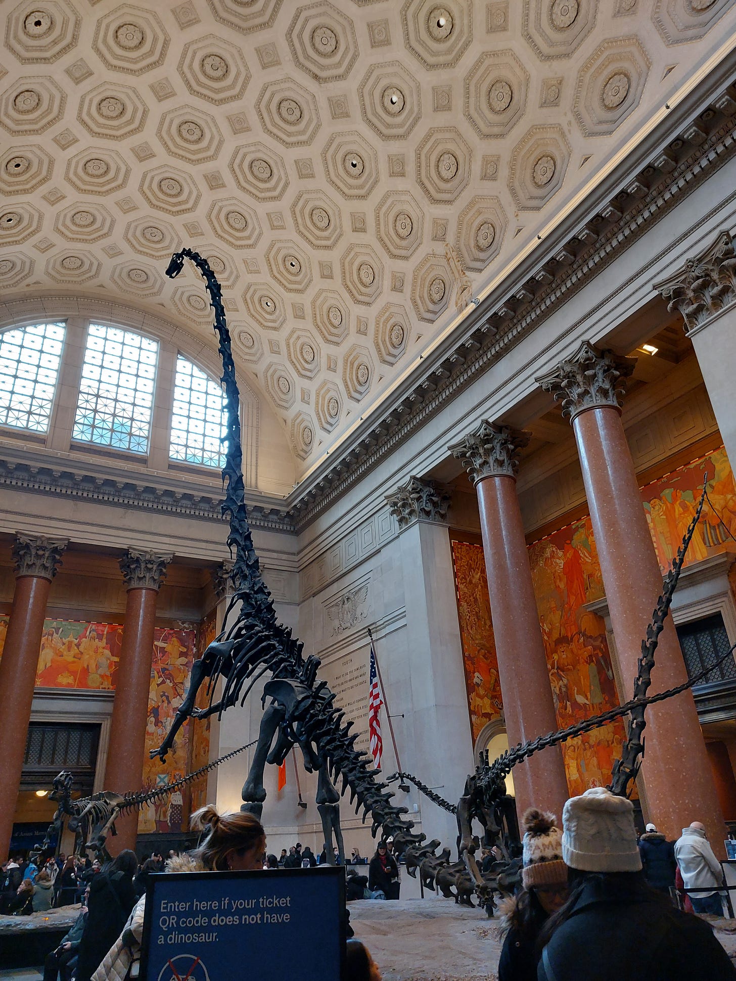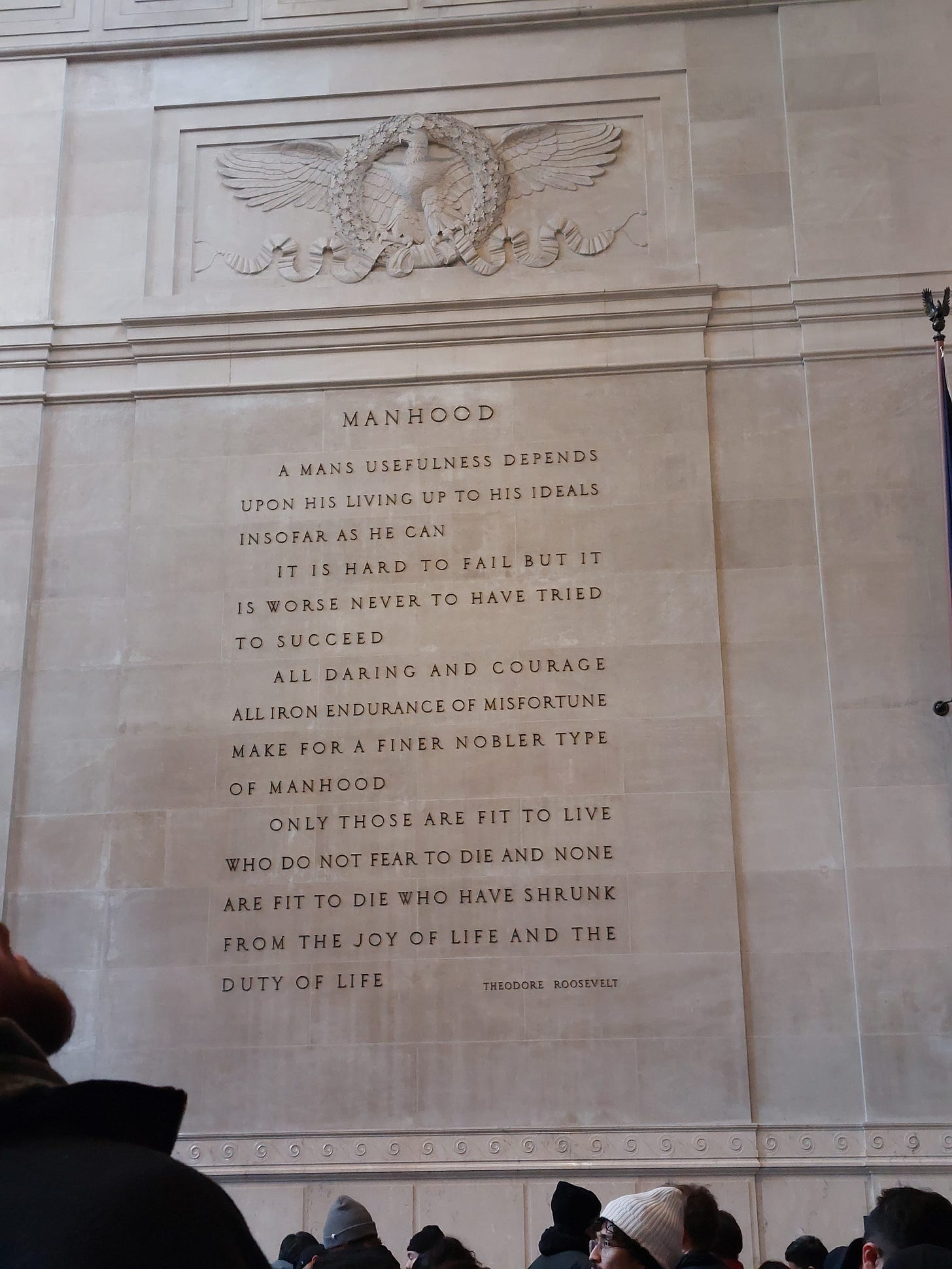 One more dinosaur awaited us in the Roosevelt rotunda, along with some inspiring words from the man—words that now seem out of step with the times, in the best possible way. (Don’t ask me why there aren’t any apostrophes, maybe they were hard to carve or something.)